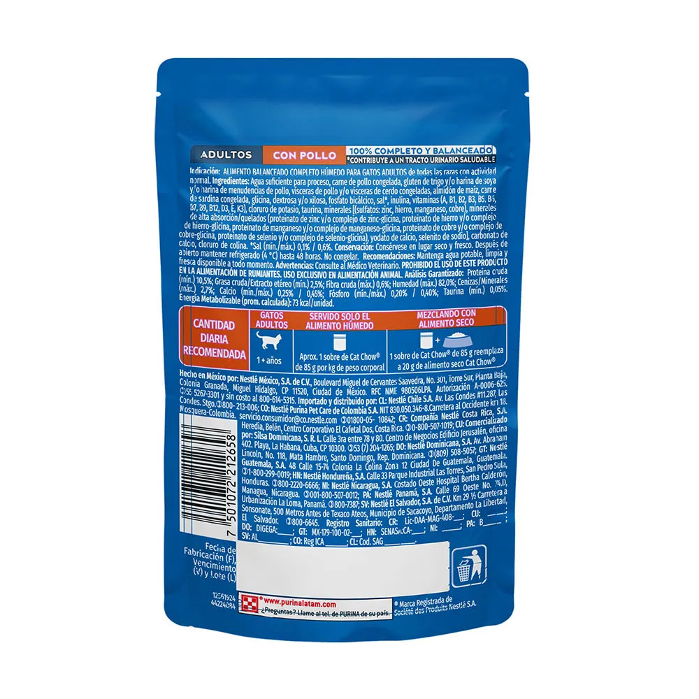 1 sobre de Cat Chow® de 85g reemplaza 20g de alimento seco Cat Chow®.